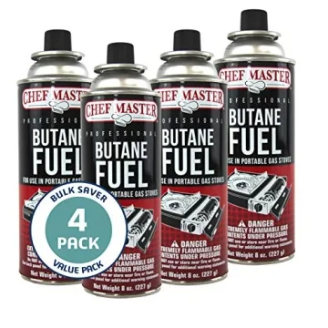 Chef Master 90340 Butane Gas Fuel Canisters - 4 Pack, 8oz for Outdoor Cooking & Grilling