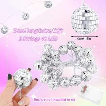 40 Disco Ball String Lights Mirror LED Party String Light Disco Party Decorations for Christmas Wall Tree Outdoor Patio Garden 9.84 Inch Per Piece