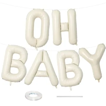 Show more Welcome to the perfect celebration with our stunning 40 Inch Beige OH BABY Balloons for Baby Shower. This charming decoration set features six 40-inch large beige foil letters, beautifully spelling out the delightful phrase 'OH BABY'. Tailored for both boys and girls, these elegant balloons are designed to stand out as a captivating focal point for any baby shower or gender reveal party. Made from high-quality aluminum foil, each balloon ensures lasting beauty, featuring a durable and non-toxic construction that guarantees they can be reused for future festivities.