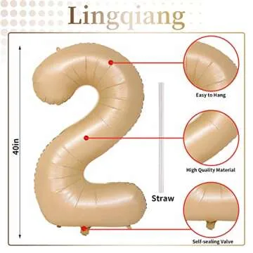 40" Neutral Number 2 Balloon for Boys Girls, Large Self Inflating Nude Helium Foil Number Balloons Set 0-9 for Women Men 2nd Birthday Graduation Anniversary Wedding Party Decorations Supplies