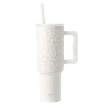 Show more The **40 oz Insulated Stainless Steel Tumbler with Straw Lid - Simple Modern Trek Collection Cream Leopard** is designed for those who lead an active lifestyle while still enjoying style and functionality. Crafted with double wall insulation, this tumbler keeps your drinks hot or cold for hours, allowing you to savor that perfect iced coffee or hot tea, anytime and anywhere. Its striking cream leopard print and tapered shape make it not just a utilitarian item, but a fashion statement as well. The convenient handle offers comfortable carrying, whether you're heading to the gym, office, or on a weekend adventure. With a leak-resistant straw lid, you can rest assured that spills are minimized, making this tumbler the go-to companion for all your travels.