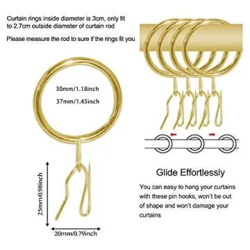 40 Pcs Metal Curtain Rings Drapery Rings Curtain Rod Rings and Metal Curtain Hooks Drapery Hooks Drapery Pins, 30 mm Internal Diameter Curtain Hanging Rings for Window Door Shower Curtain (Gold)