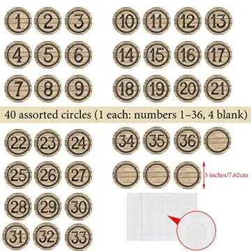 Show more Bring a touch of organization and creativity into the classroom or home with these fantastic 40 Pieces Number Cutouts. Specifically designed with an industrial chic or wooden style aesthetic, these vibrant number cutouts are crafted to catch the eye and engage students or kids instantly. Each set includes numbers from 1 to 36, along with 4 blank circle cutouts, allowing for personalized DIY labeling. Whether for teachers or parents, the possibilities are endless!