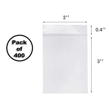 400 Pack 2x3 Plastic Zip Bags- Small Plastic Zip Bags- 3 mil Reclosable Bags - Zipper Poly Bag- Jewelry Storage Bags -Small Earring Bags -Earring Plastic Bags-Self Seal Poly Bags- 2 x 3 inch(400 Pack)