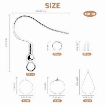 400 Piece Sterling Silver Plated Earring Hooks,Hypoallergenic Earring Making Kit with Beading Hoop Earring Finding Component Accessories,Earring Backs,Jump Rings for Jewelry Making DIY Craft