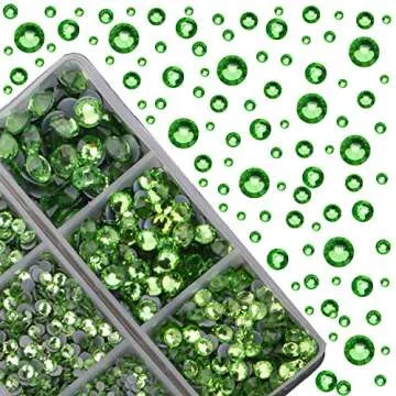 Show moreTransform your creative projects into dazzling displays with our premium 4000pcs Mixed Size Hot Fix Round Crystals Gems Glass Stones Hotfix Flat Back Rhinestones in a stunning Peridot shade. Designed for both professional crafters and DIY enthusiasts, these rhinestones are perfect for blinging out cheer apparel, costumes, and a wide variety of crafts. With each rhinestone exhibiting unbeatable sparkle and clarity, they’re sure to bring your creative visions to life!