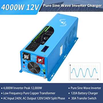 4000W 12V Inverter Charger,Peak 12000W,240Vac Input, 120V/240Vac Output Split Phase,Low Frequency,Pure Sine Wave Inverter, LCD Remote Controller,for Off Grid System(Upgraded Version)