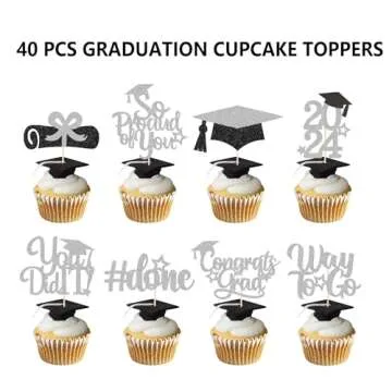 40Pcs Graduation Cupcake Toppers 2024 Silver Black Glitter Class of 2024 Graduation Cupcake Toppers,Diploma Grad Cap Cake Toppers Picks,Graduation Party Decorations 2024,Graduation Party Supplies