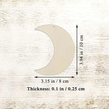 40pcs Moon Wood DIY Crafts Cutouts Wooden Moon Shaped Hanging Ornaments with Hole Hemp Ropes Wood Tags for Wedding Birthday Baby Shower Christmas Decorations