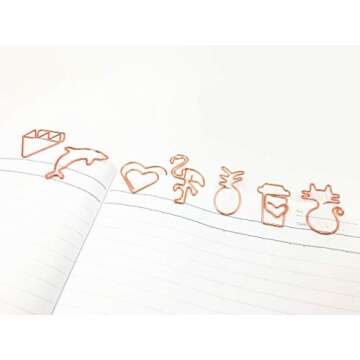 Show more Introducing the delightful and uniquely designed paper clips that bring a dash of charm to your everyday organization. These 40PCS Paper Clips boast a range of adorable shapes, including a Crown, Coffee Cup, Heart, Diamond, Pineapple, Cat, Dolphin, Flamingo, Envelope, and Letters Love—four pieces of each design to match your creative vibe. Each paperclip is carefully crafted from high-strength metal, which is heat-treated to ensure they are sturdy, durable, and resist deformation during use. What's more, the electroplating paint process enhances their corrosion and rust resistance, ensuring they stand the test of time.