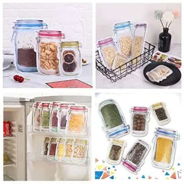 Introducing our 40Pcs Reusable Mason Jar Ziplock Bags, the ultimate solution for your food storage needs! Crafted from eco-friendly, durable PE material, these bags are not just functional but designed to impress with their charming mason jar aesthetic. Imagine storing your snacks, meals, and ingredients in colorful, easy-to-clean bags that add a touch of style to your kitchen while providing eco-conscious functionality. Each pack includes 40 bags in various...
