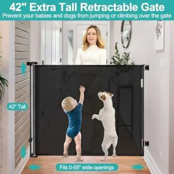 42 Inch Extra Tall Retractable Dog Gate - Secure for Kids and Pets