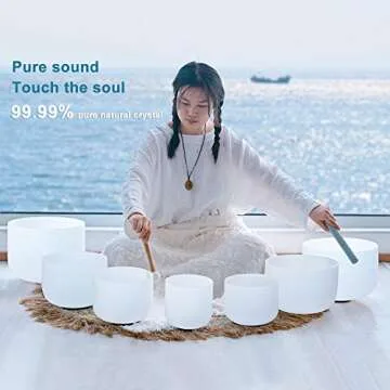 Show moreIndulge in the mesmerizing sounds of our premium quartz crystal singing bowls set, designed for both sound healing and meditation. Each bowl resonates with a rich, deep sound that elevates your spiritual practice and enhances your overall well-being. Crafted with meticulous precision in our state-of-the-art factory, every bowl undergoes a strict selection process to ensure that only the finest quality instruments are delivered to you. This set includes an impressive collection of seven 440 Hz crystal singing bowls, each uniquely tuned to produce harmonious tones that promote relaxation and tranquility.