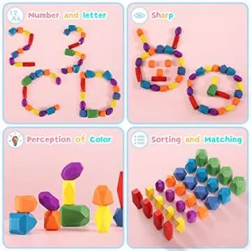 44PCS Sensory Toddler Wooden Stacking Rocks Toys for Boys & Girls Ages 3+ Year Old Building Blocks Montessori Preschool Educational STEM Toys for Kids Birthday Gifts Safe Creativity Rainbow Stones