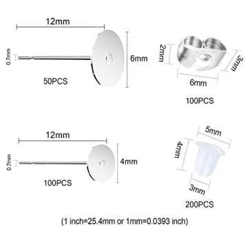 450PCS Earring Posts Stainless Steel Flat Pad,Hypoallergenic Stud Earrings with Butterfly and Rubber Bullet Earring Backs for Jewelry DIY Making Findings (Silver) (Silver)