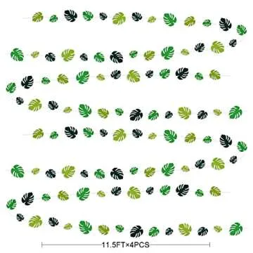 Show more Transform your next celebration into a tropical paradise with our **46 Ft Tropical Party Decorations Green Palm Leaves Garland Banner**! This stunning decoration set includes **four packs of beautifully crafted hanging green palm leaf streamers**, each measuring **11.5 feet (3.5 meters)**. Perfectly designed to elevate your summer gatherings, these garlands are made from high-quality, double-sided paper material that is not only durable but also environmentally friendly. The neat cuts and vibrant colors ensure that you create a breathtaking ambiance that will impress your guests.