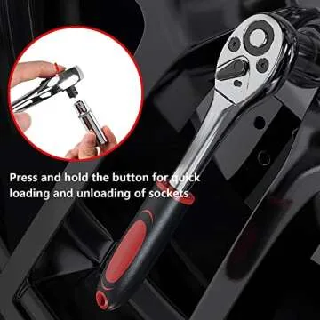 46 PCS Socket Wrench Set, Mechanic Tool Kit Quick-release Ratchet, 1/4" Drive Bit Metric Combination Tools for Auto Repairing & Household with Storage Case