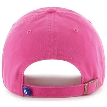 47 Brand MLB Magenta Pink Primary Logo Clean Up Adjustable Strap Baseball Dad Hat Cap, Adult One Size Fits All - Los Angeles Dodgers Pink
