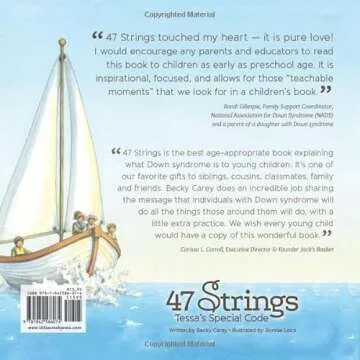 Unlike other children's books on Down syndrome, 47 Strings: Tessa's Special Code stands out with its authentic narrative stemming from personal experience. Many similar books lack the sensitivity and relatable storytelling this book delivers. Additionally, while other books might focus solely on definitions, Tessa's story conveys emotions and relationships, enabling a comprehensive understanding that is both educational and heartfelt.