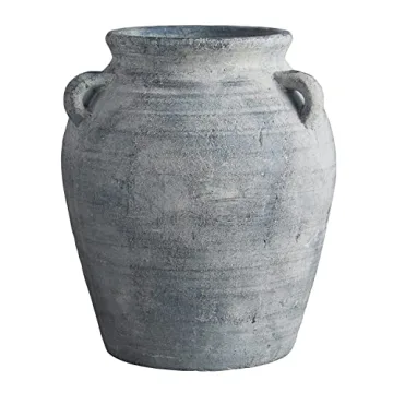 47th & Main Old World Style Distressed Terracotta Planter Pot Vase with Handles for Flowers Plants and More, 12" Tall, Grey