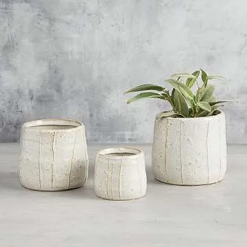 47th & Main Short Textured White Glazed Ceramic Planter Flower Pot for Succulents Small Plants and More, Small, Stripes