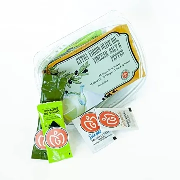 Show moreElevate your dining experience with our exceptional 48 Individual Extra Virgin Olive Oil, Vinegar, Salt, and Pepper Packets. This beautifully packaged assortment contains 12 packets each of rich, extra virgin olive oil, zesty white wine vinegar, high-quality sea salt, and freshly ground pepper. Each packet is a convenient 10 ml of the finest ingredients, sourced from the sun-drenched orchards of Portugal, tailored for food lovers and health-conscious individuals alike. Whether you're adding a drizzle to your salad or enhancing the flavor of your favorite dishes, these packets are perfect for on-the-go gourmet indulgence.