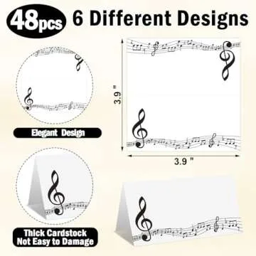 48 Pcs Music Note Place Cards Black White Musical Notes Seating Name Tags Music Placecard Holders Seating Place Cards Elegant Name Tents for Wedding Concert Birthday Party Dinner Supplies