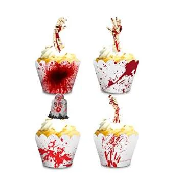 48 Pieces Halloween Cupcake Toppers Cupcake Wrappers Kit Bloody Zombie Hand Cake Decoration for Halloween Party Kitchen Cupcake Baking
