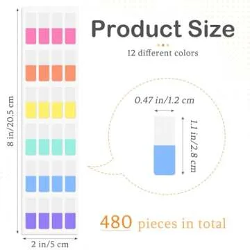 480 PCS Sticky Index Tabs, Colored Strip Page Markers, Writable and Repositionable File Tabs Flags for Pages, Reading Notes, Classify Files, 12 Colors(0.47X 1.1inch)