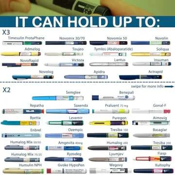 It accommodates a variety of insulin pens and EpiPens such as Toujeo, Novolog, and Victoza.