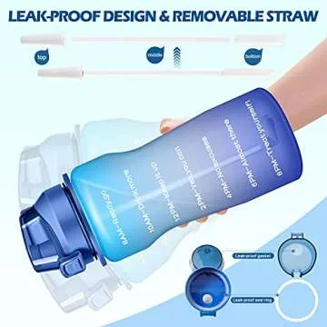Show more The 4AMinLA Wonderful Daily Time Marked Water Bottle is the essential companion for anyone looking to boost their hydration habits. Designed with a **large capacity** of 100 ounces, it ensures you stay hydrated throughout the day without constant refills. The innovative rebound lid design eliminates the worry of your nose getting bumped while you sip from this stylish bottle.
