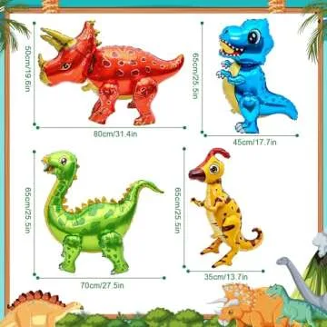 4Pack Giant Self Standing Dinosaur Foil Balloons for Dinosaur Birthday Party Supplies Decorations