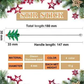 Introducing the exquisite 4Pcs Christmas Pine Tree Shape Cocktail Swizzle Stick, a delightful blend of eco-conscious design and festive charm! Made from premium eco-friendly glass and adorned with a sleek stainless steel stirring rod, these cocktail stirrers elevate your drinking experience to new heights. Perfect for both home bars and professional settings, these stirrers measure 18cm (7 inches) in length, making them the ideal accessory for both tall and short glasses. Their unique green...