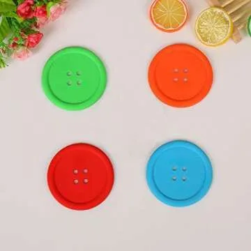 Show moreIntroducing our whimsical and practical 4pcs Cute Colorful Silicone Button Coaster Cup Mat, designed to elevate your drink experience while protecting your surfaces. Crafted from high-quality silicone, these coasters are not only durable and long-lasting but also feature a non-slip surface that keeps your drinks securely in place. With their eye-catching button design, they make for a delightful addition to any household, office, or gathering. Whether you’re enjoying coffee in the morning or entertaining guests in the evening, these coasters are sure to impress while safeguarding your tabletops from unsightly stains and heat damage.