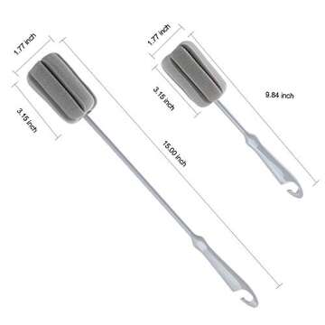 4PCS Grey Soft Sponge Bottle Cleaning Brush Plastic Handle Cup Brush Scrubber Washing Brush vase Bottle Pot Cleaner(2 size 10”15”)
