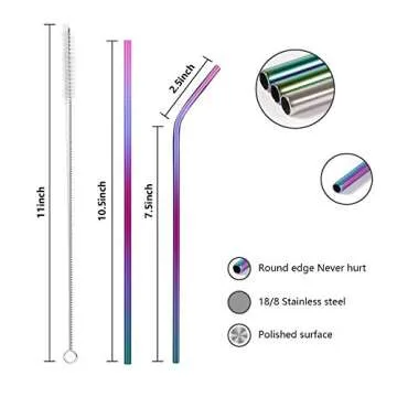 4PCS Reusable Metal Straws,8.5" Stainless Steel Straws with Case -Cleaning Brush for 20/30 Oz for Tumblers (Rainbow)