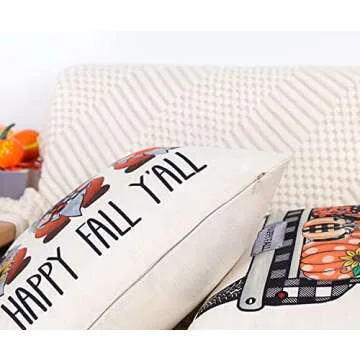 4TH Emotion Fall Decor Pillow Covers 18x18 Set of 4 Thanksgiving Pumpkin Farmhouse Decorations Buffalo Check Gnomes Outdoor Happy Fall Harvest Pillows Decorative Throw Cushion Case for Couch TH006