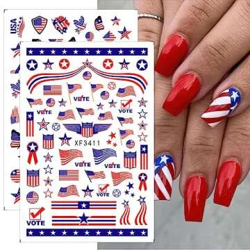 4th of July Nail Art Stickers USA Independence Day Nail Stickers 3D American Flag Art Nail Stickers Patriotic Design Nail Decals Self-Adhesive Butterfly Letter Flame Nail Art Decals 8 Sheets