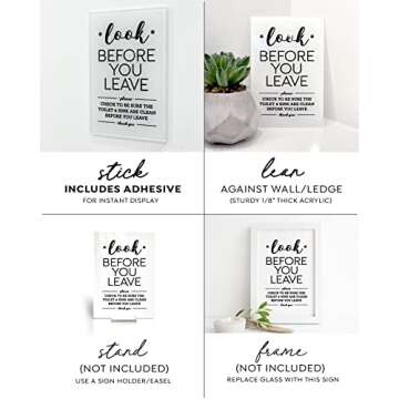 4x6 Inch Help Keep Toilet Sink Clean, Look Before you Leave Designer Sign ~ Ready to Stick, Lean or Frame