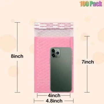 4x8 Inch Bubble Mailers 100 Pack, Self Seal Padded Envelopes for Small Business, Waterproof Shipping Bags, Light pink