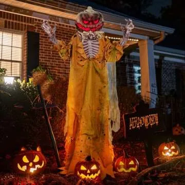 - Life Size Design: Measuring 5.9 feet tall, this animated pumpkin scarecrow is the ultimate scare for your Halloween setup.