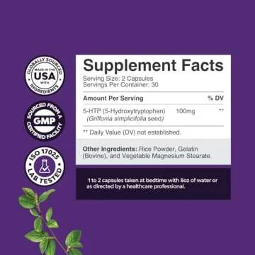 5 HTP Supplement - Natural Sleep and Mood Enhancer 100mg