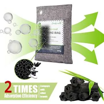 5 Pack Bamboo Charcoal Air Purifying Bags with Hooks,Charcoal Bags Odor Absorber for Home,Odor Eliminator,Closet Deodorizer, Car Air Freshener(5 Pack, 200g Each)