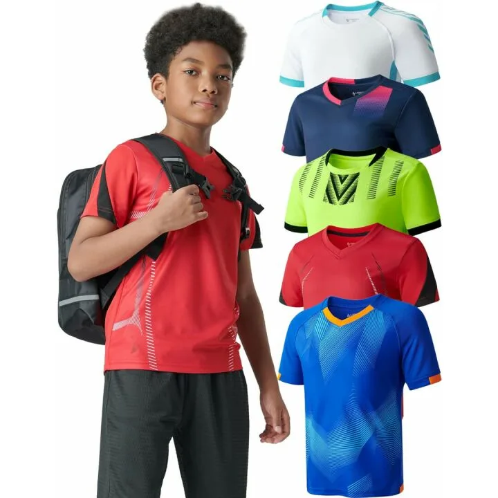 Show moreGive your young athlete the edge they need with this 5 Pack Boys Athletic Shirts set. Designed for youth athletes, these dry-fit t-shirts are crafted to provide maximum comfort and performance. Each short sleeve tee is tailored to keep kids cool and dry during intense sports activities, all while offering a stylish look. Perfect for boys who are always on the move, these shirts boast a comfortable fit, vibrant colors, and a non-transparent, breathable fabric. Not only do these shirts retain their color and structure after multiple washes, but they also resist shrinking, ensuring long-lasting wear. The varied colors allow for mix-and-match versatility, making them a practical addition to any young athlete's wardrobe.