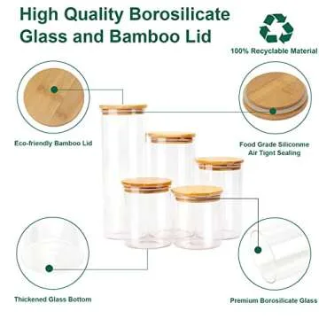 5 Pack Glass Kitchen Canister Set: Airtight Bamboo Lid Storage Jars