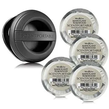 5 Pc Set - Bath & Body Works Scentportable Black Rubber Clip & 4 Mahogany Teakwood Refills