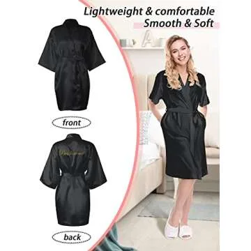 The robes are made from a soft, breathable polyester material that feels wonderful against your skin, ensuring comfort for those all-important moments before the ceremony. Whether you're lounging with your bridal party, preparing for photos, or enjoying a peaceful night, these robes provide a chic and sophisticated look that enhances your bridal experience. The medium size fits most, providing a loose and comfortable fit, so you can move freely without feeling constricted.