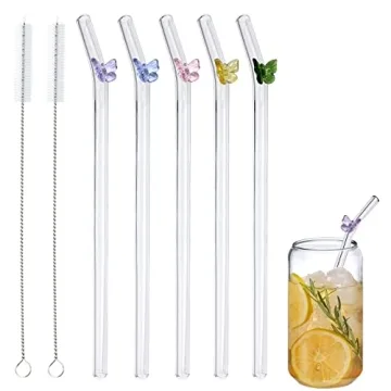 5 Pcs Reusable Glass Straws: Colorful Butterfly Design, 7.9in X 8mm Shatter Resistant
