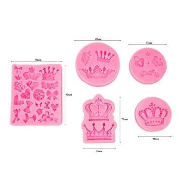 5 Pcs Silicone Crown Fondant Mold Candy Cake Decorating Tools, Chocolate Heart Key Baking Mold Cake Supplies for Sugarcraft, Cake Decoration, Cupcake Topper, Chocolate, Pastry, Cookie Decor, Jewelry