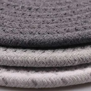 5-Pcs Trivet Pot Holder: Round Woven Potholders Set - 100% Cotton Braided Hot Pads - Coasters - Table Mats for Cooking and Baking One 11.8 Inch and Four 7 Inch